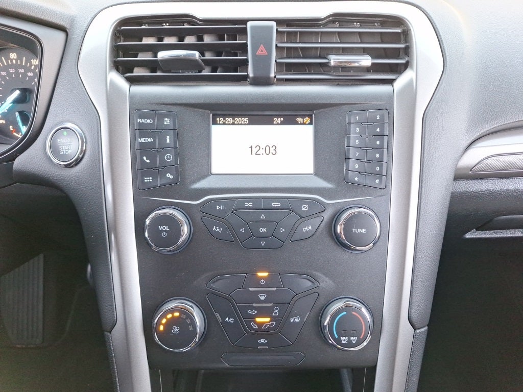 2020 Ford Fusion S 4D Sedan 6-Speed Automatic, Equipment Group 100A, 4 Speakers, 4-Wheel Disc Brakes, ABS brakes, Air Conditioning, AM/FM radio, Auto High-beam Headlights, Auto-dimming Rear-View mirror, Brake assist, Bumpers: body-color, Cloth Front Bucket Seats, Delay-off headlights, Driver door bin, Driver vanity mirror, Dual front impact airbags, Dual front side impact airbags, Electronic Stability Control, Emergency communication system: 911 Assist, Exterior Parking Camera Rear, Four wheel independent suspension, Front anti-roll bar, Front Bucket Seats, Front Center Armrest, Front reading lights, Fully automatic headlights, Illuminated entry, Knee airbag, Low tire pressure warning, Occupant sensing airbag, Overhead airbag, Overhead console, Panic alarm, Passenger door bin, Passenger vanity mirror, Power door mirrors, Power steering, Power windows, Radio data system, Radio: AM/FM/MP3 Stereo, Rain sensing wipers, Rear anti-roll bar, Rear reading lights, Rear window defroster, Remote keyless entry, Security system, Speed control, Speed-sensing steering, Speed-Sensitive Wipers, Split folding rear seat, Steering wheel mounted audio controls, SYNC Communications & Entertainment System, Tachometer, Telescoping steering wheel, Tilt steering wheel, Traction control, Trip computer, Variably intermittent wipers, Wheels: 16 Steel w/Silver-Painted Covers, 6-Speed Automatic, Equipment Group 100A.
