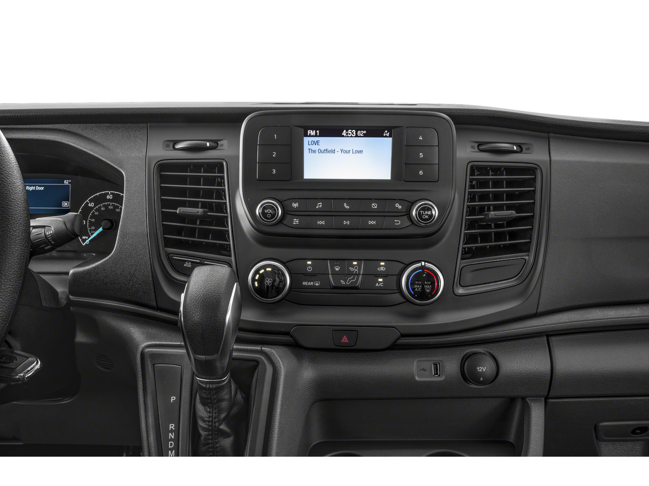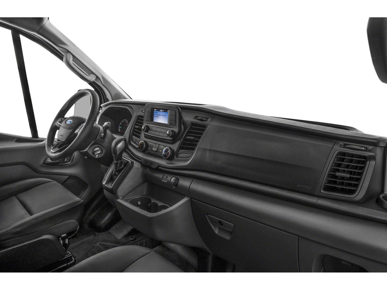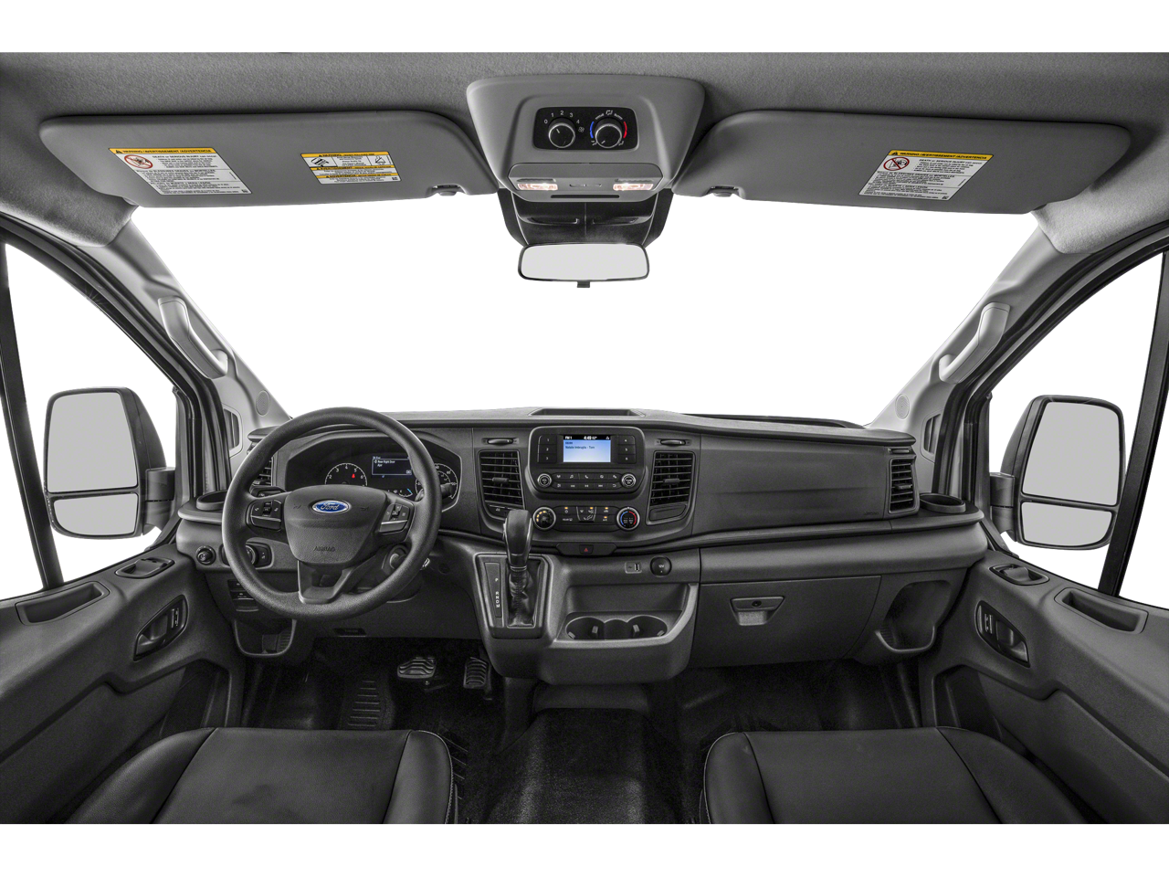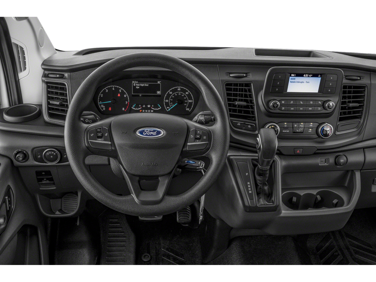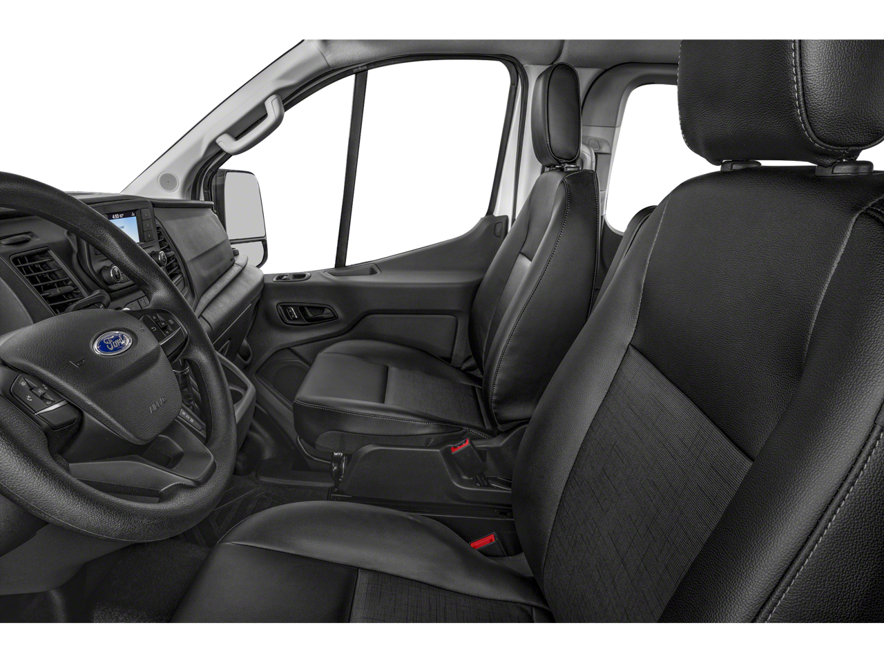 Imagine the convenience of the large center console, the comfort of the cloth front bucket seats with driver's seat-mounted armrest, and the peace of mind provided by the comprehensive safety suite, including front and side impact airbags, electronic stability control, and a reverse sensing system. The Transit-350 XLT also boasts a host of premium amenities, such as automatic temperature control, power windows and mirrors, and a premium audio system with SYNC 4 and navigation.