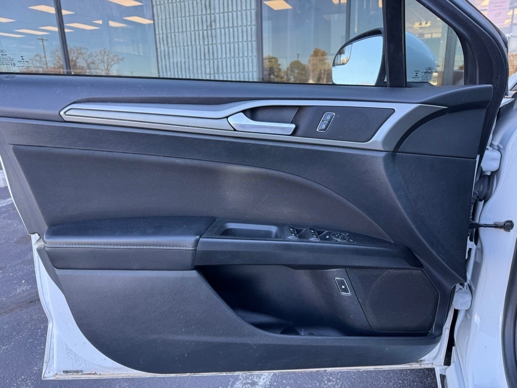 THIS VEHICLE IS EQUIPED WITH THE FOLLOWING FEATURES AND OPTIONS: Equipment Group 600A, Fusion SE Hybrid Technology Package ((2) 4.2" Driver Configurable LCD Display, 110V/150W AC Power Outlet, and SYNC 3 Communications & Entertainment System), Fusion Hybrid SE, 4D Sedan, I4 Hybrid, E-CVT Automatic, FWD, Oxford White, Ebony Cloth, 4-Wheel Disc Brakes, 9 Speakers, ABS brakes, Air Conditioning, Alloy wheels, AM/FM radio: SiriusXM, Automatic temperature control, Brake assist, Bumpers: body-color, CD player, Cloth Front Bucket Seats, Compass, Delay-off headlights, Driver door bin, Driver vanity mirror, Dual front impact airbags, Dual front side impact airbags, Electronic Stability Control, Emergency communication system: 911 Assist, Exterior Parking Camera Rear, Four wheel independent suspension, Front anti-roll bar, Front Bucket Seats, Front Center Armrest, Front dual zone A/C, Front reading lights, Fully automatic headlights, Illuminated entry, Knee airbag, Low tire pressure warning, Occupant sensing airbag, Outside temperature display, Overhead airbag, Overhead console, Panic alarm, Passenger door bin, Passenger vanity mirror, Power door mirrors, Power driver seat, Power passenger seat, Power steering, Power windows, Radio data system, Radio: AM/FM Stereo w/MP3/Single-CD Player, Rear anti-roll bar, Rear reading lights, Rear seat center armrest, Rear window defroster, Remote keyless entry, Security system, Speed control, Speed-sensing steering, Speed-Sensitive Wipers, Split folding rear seat, Steering wheel mounted audio controls, SYNC Communications & Entertainment System, Tachometer, Telescoping steering wheel, Tilt steering wheel, Traction control, Trip computer, Variably intermittent wipers, and Wheels: 17" Sparkle Silver Painted Aluminum